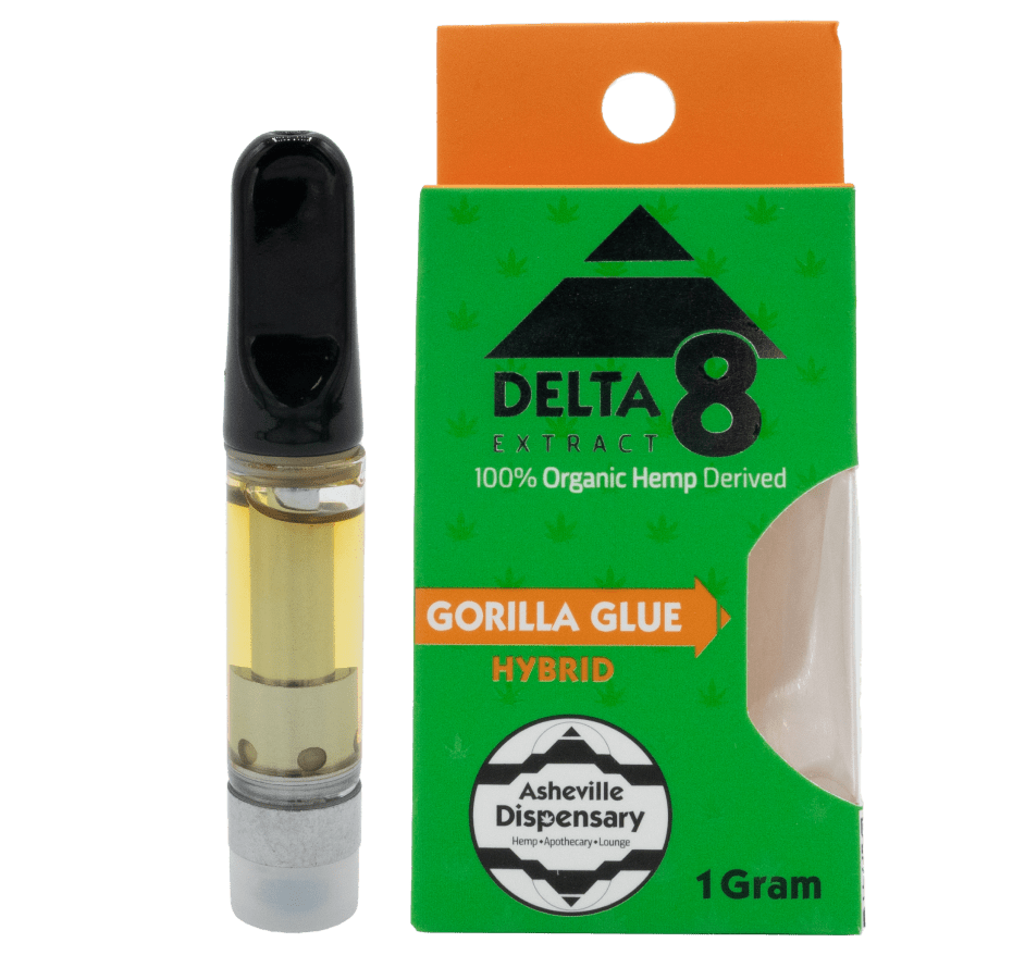 Asheville Dispensary’s Delta 8 Cartridge – Gorilla Glue delivers a potent indica experience with 850-950mg of Delta 8 THC per 1g cart. This premium cartridge combines the earthy, pine-like aroma of Gorilla Glue with smooth Delta 8 effects, offering a chill and relaxing vape experience.
