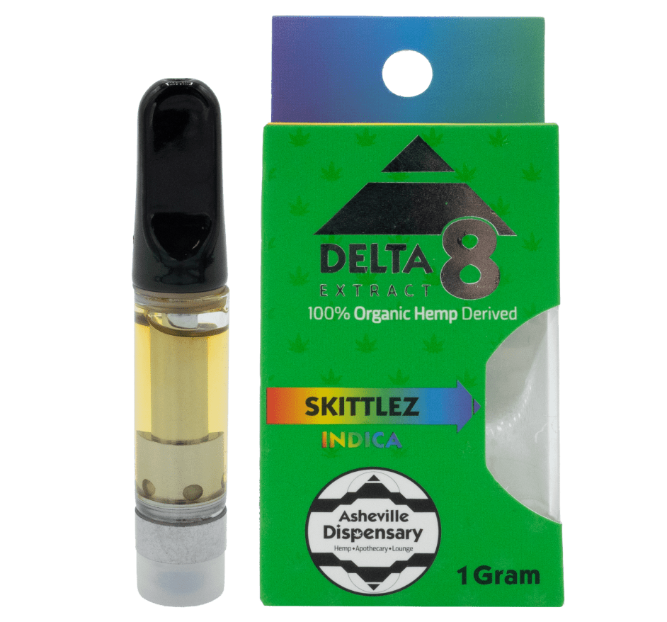 Asheville Dispensary’s Delta 8 Cartridge – Skittlez delivers an indica-dominant experience with 850-950mg of Delta 8 THC per 1g cart. This premium cartridge combines the sweet, fruity flavors of Skittlez with smooth Delta 8 effects, offering a chill and mellow vape experience.