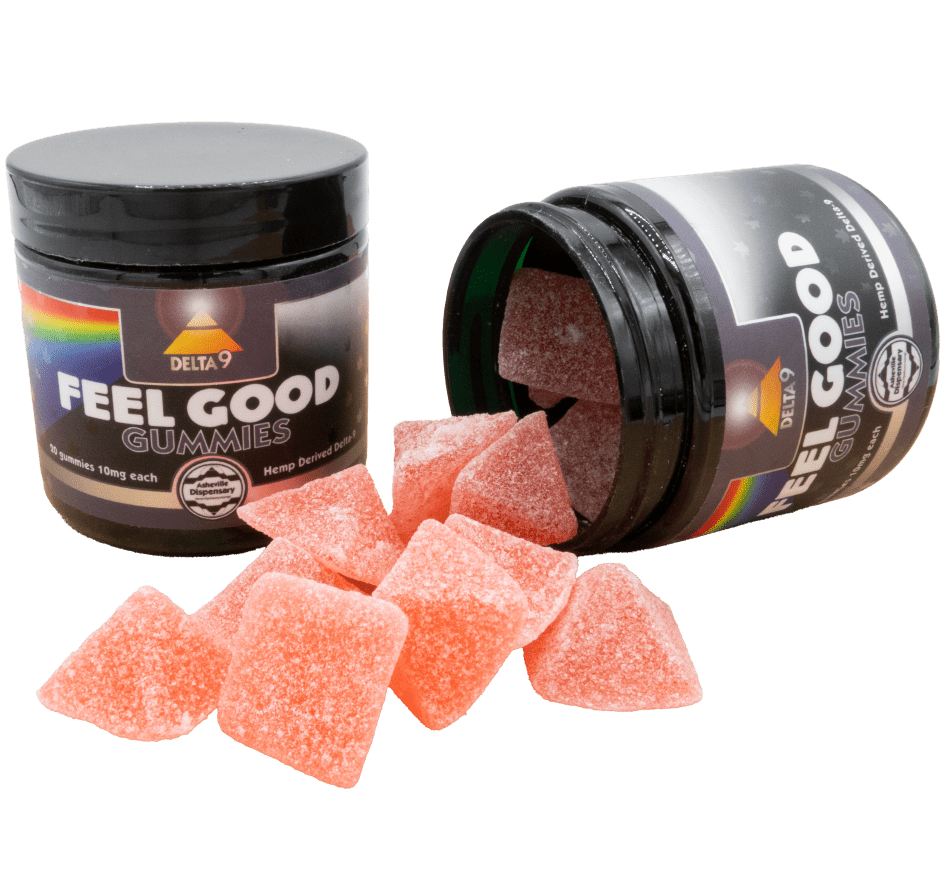 Asheville Dispensary’s Feel Good Delta 9 Gummies contain 10mg of Delta 9 THC per gummy, with 20 gummies per jar. These flavorful gummies offer a potent, mood-elevating effect. Delta 9 THC may promote relaxation, reduce stress, and help manage discomfort.